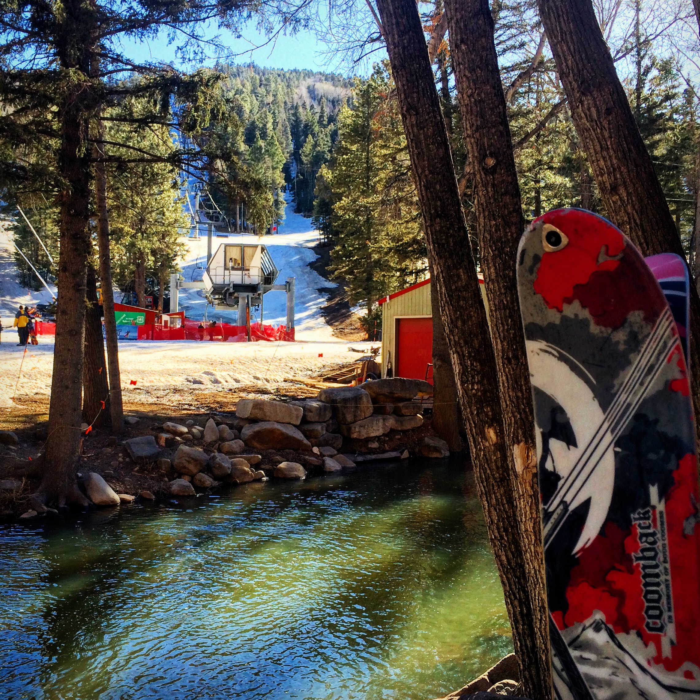 A scenic one hour drive from the Santa Fe airport, Pajarito is a great local ski area near the city of Los Alamos. The ski area was founded in the 1950s by research scientists from the National Laboratory looking for some nearby recreation. You get a reminder of this when you pass a security checkpoint on the outskirts of town, but a quick ID check and you can continue on your way. It was a nice, relaxed ski area for an afternoon of spring skiing the same day I flew in from the east coast.