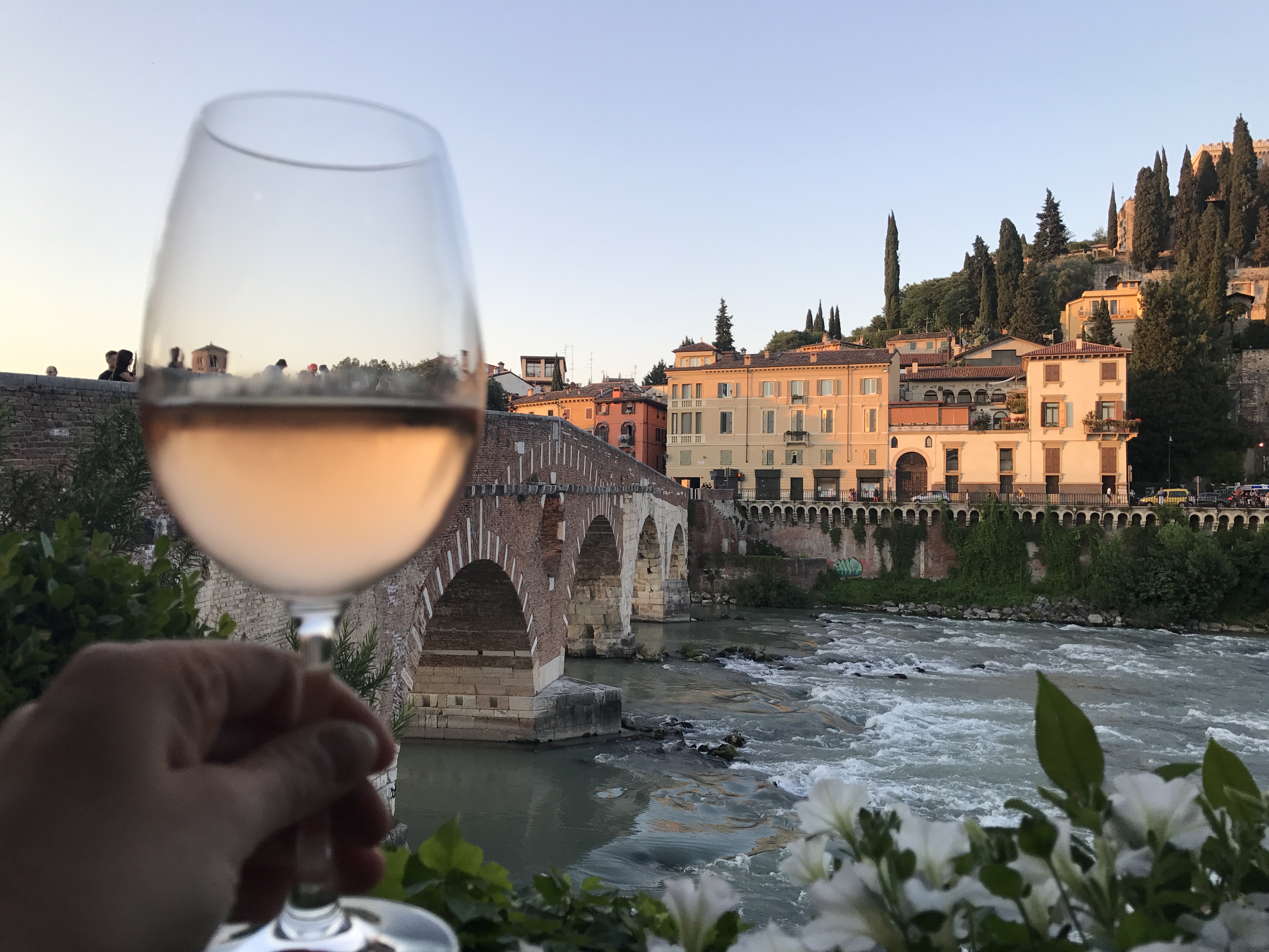 Osteria Ponte Pietra Ristorante: Osteria Ponte Pietra is nestled next to the Ponte Pietra bridge with a classic dining room indoors and small tables on balconies overlooking the river in the back. We made reservations to make sure we got outdoor seating and had perfect golden-hour views over the Adige to the archaeological museum and Castel San Pietro. Recognized in the most recent Michelin Guide, we found the food and service were excellent and the views couldn’t be beat.
