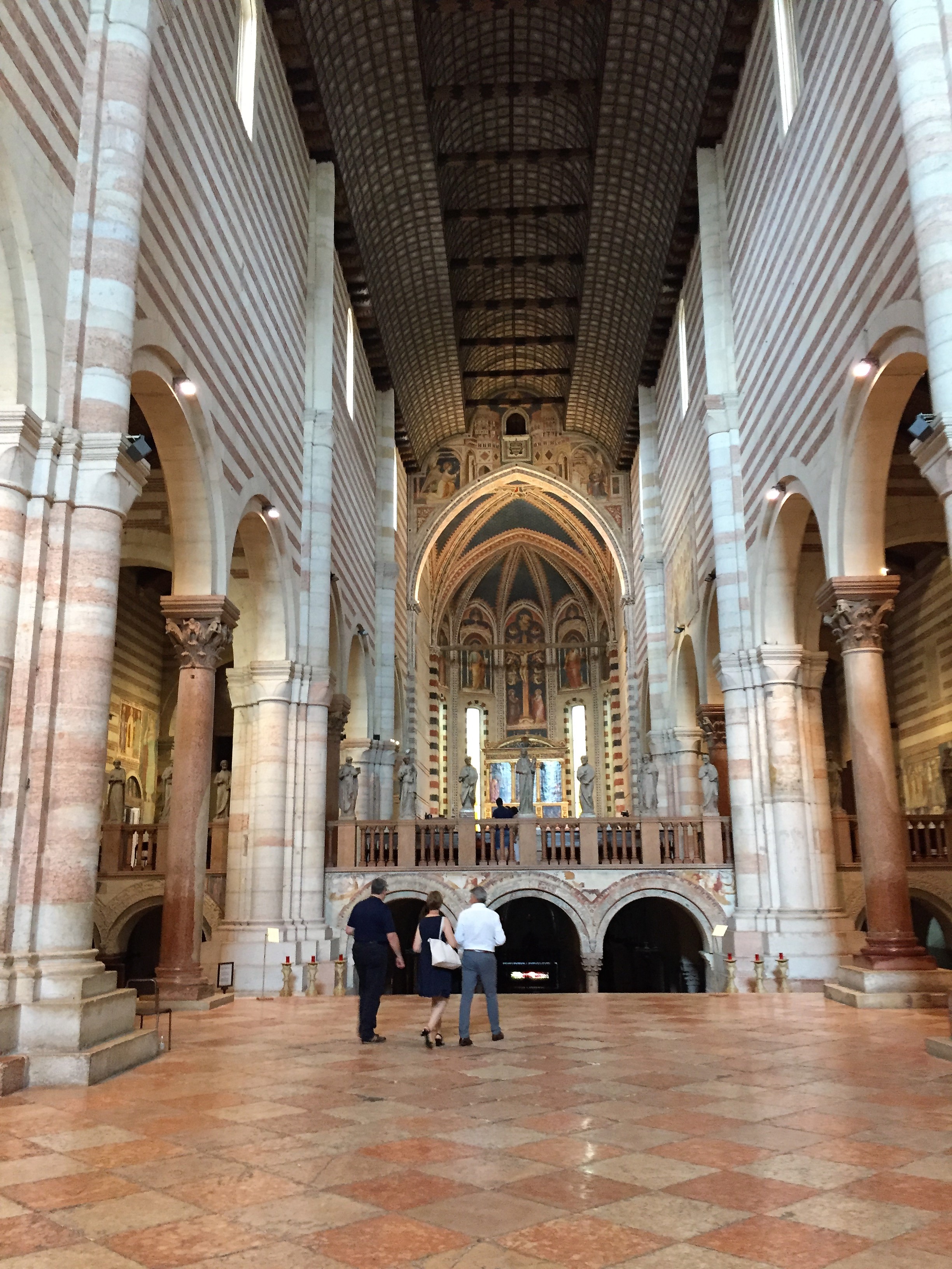 Basilica di San Zeno Maggiore: This was our favorite church in Verona and the most unusual as well. Located outside the historic city center (reachable by bus or a longer walk from downtown) it can be a site that’s easy to overlook. Named for the city’s patron saint, the church features a split-level design with the crypt in a lower church and stairs up to the central church. The railing cordoning off the lofted central church is lined with statues, and there are amazing frescos and a colonnaded cloister as well.