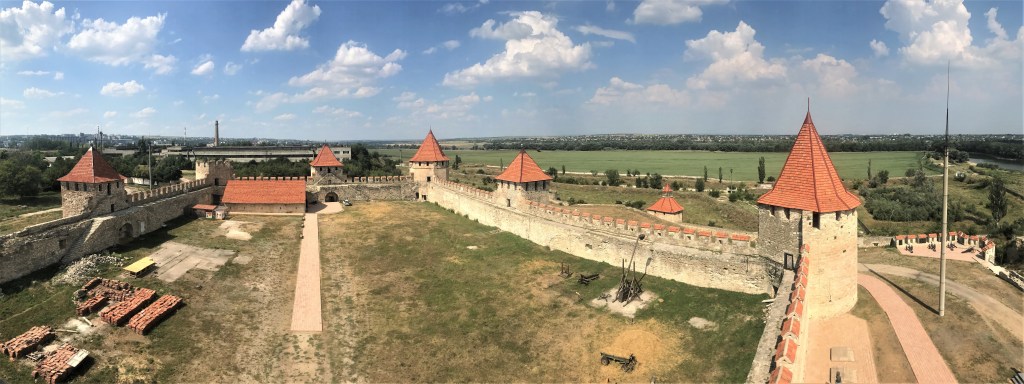 Bender Fortress (also called Bendery Fortress or Tighina Fortress) was one of the highlights of our day in Tiraspol. An Ottoman-era fortress, it was built in the 16th century and features a large courtyard surrounded by thick walls and multiple towers and gates. We visited the small museum on-site and climbed one of the large towers for views of the complex, the Dniestr River, and surrounding countryside.
