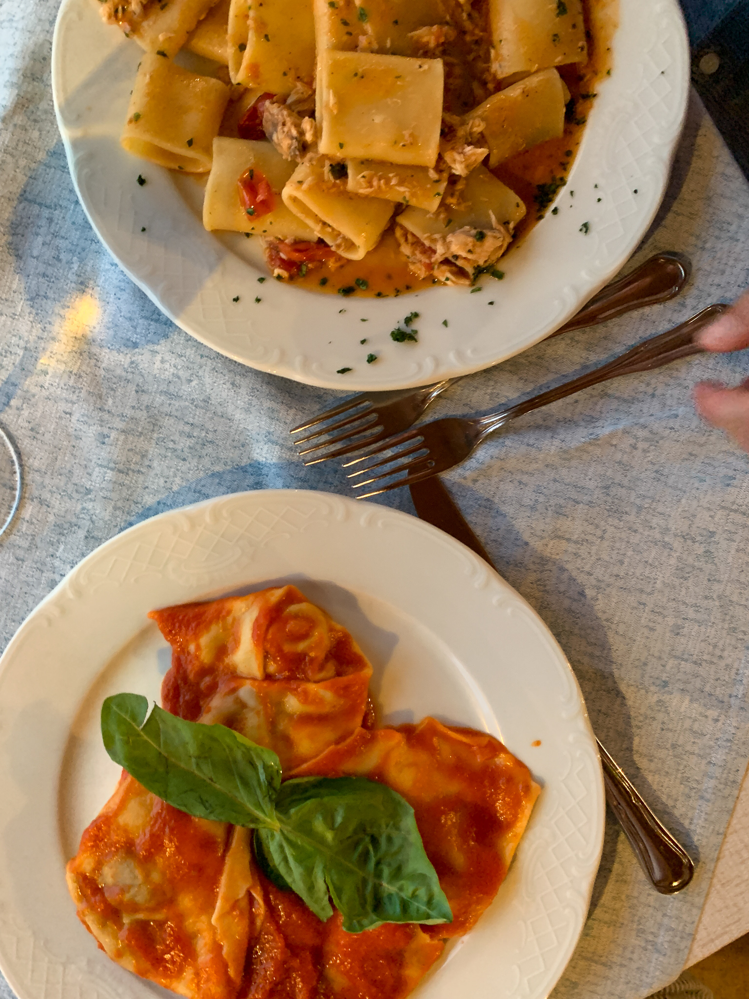 We had several excellent meals while we were on Procida. Dinner at La Lampara, with panoramic views over Coricella’s harbor, featured fresh local seafood and a lemony twist on a traditional tiramisu. A reservation was necessary for the tables with the best views.