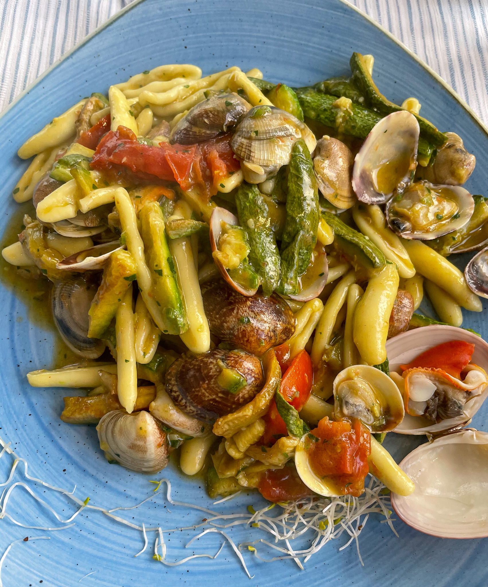 Tonino La Conchiglia is the only restaurant on Chiaia beach, and can be reached by a long staircase down the cliff-face, or via a boat shuttle from Coricella harbor. We loved the experience of taking the small boat there and back, and the unspoiled sea views from the restaurant’s perch on the beach.